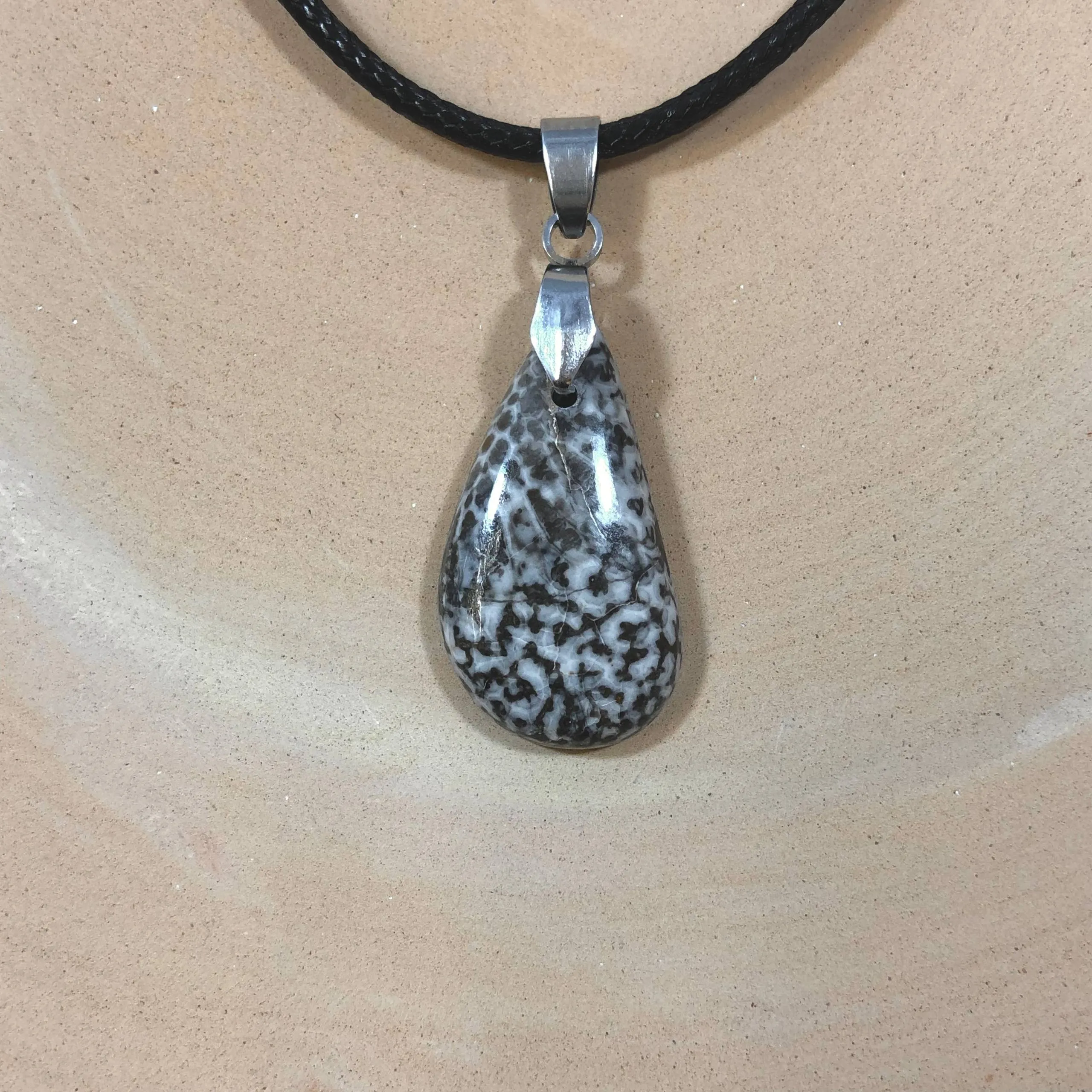 این گردنبند ساخته شده از سنگ فسیل مرجان کاملا طبیعی مناسب سنگ درمانی و چاکرا است.