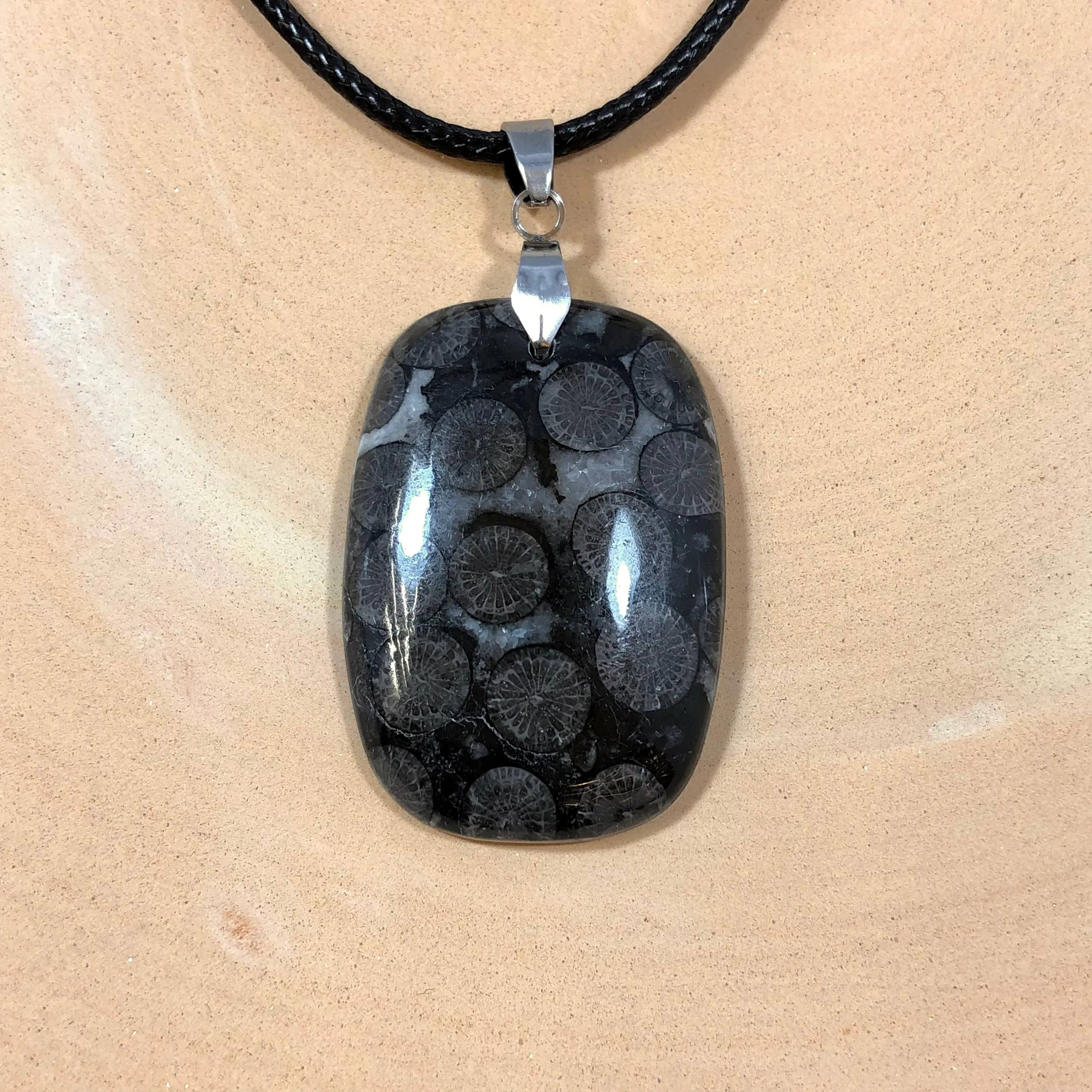 این گردنبند ساخته شده از سنگ فسیل مرجان اصلیی مناسب سنگ درمانی و چاکرا است.