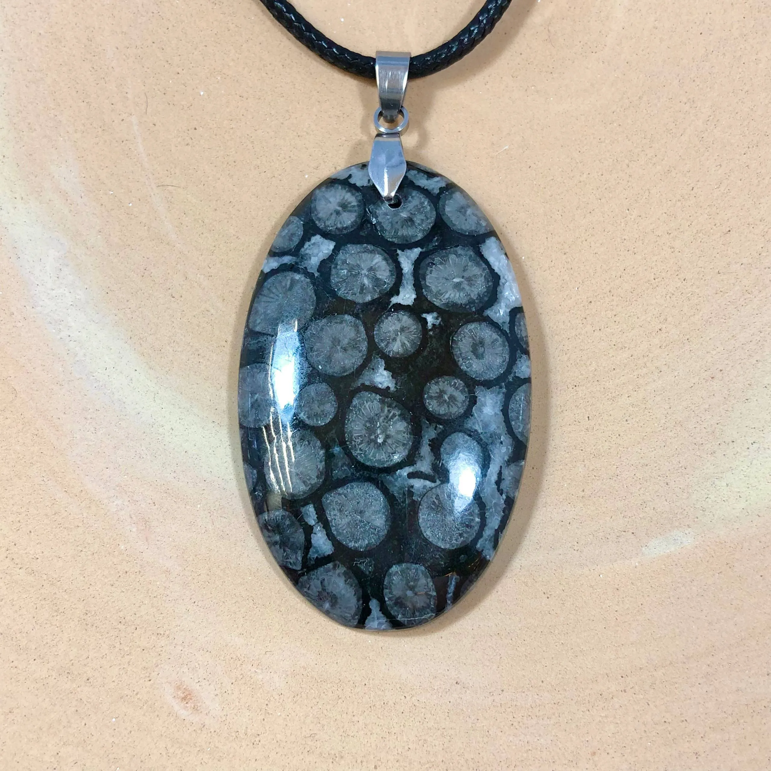 این گردنبند ساخته شده از فسیل مرجان آگاتیزه درجه یک، مناسب سنگ درمانی و چاکرا است.