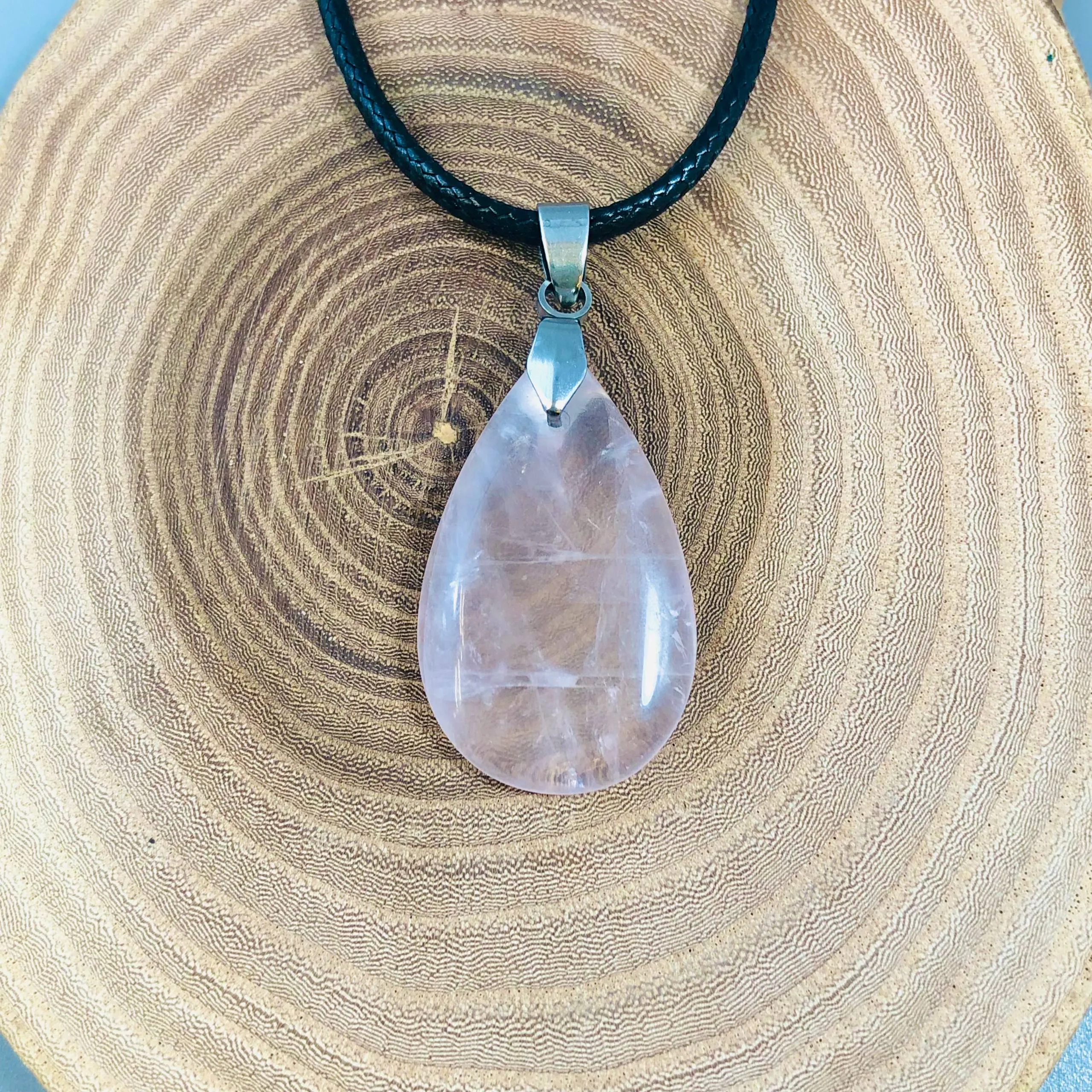 پلاک رز کوارتز اشکی زیبا مناسب سنگ درمانی است.