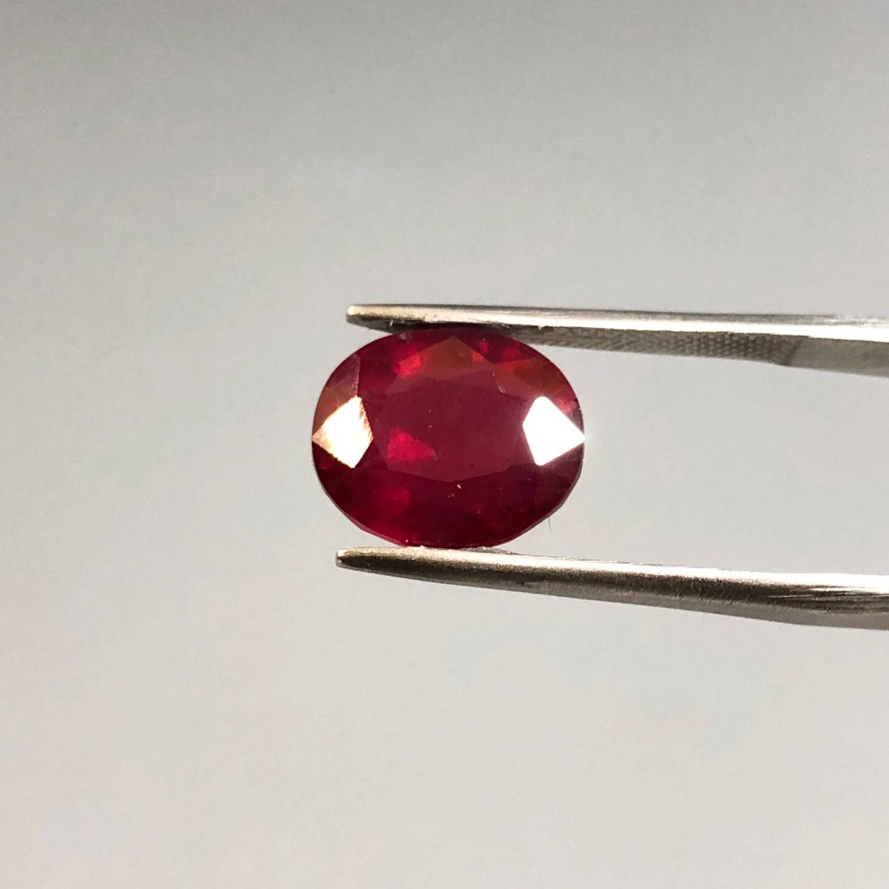 این یاقوت سرخ معدنی درجه1 بیضی ، تلالو و درخشش بالایی دارد.